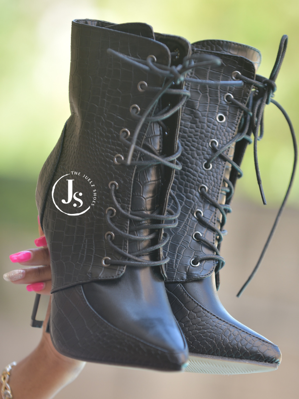 Be glam and turn heads in our lace-up boots. These ladies’ boots will make you stand out, and they are great paired with dresses, skorts, jeans, shorts, the list is endless. Perfect way to complete any look. They feature a side zipper and front lace, which makes wearing them super easy.